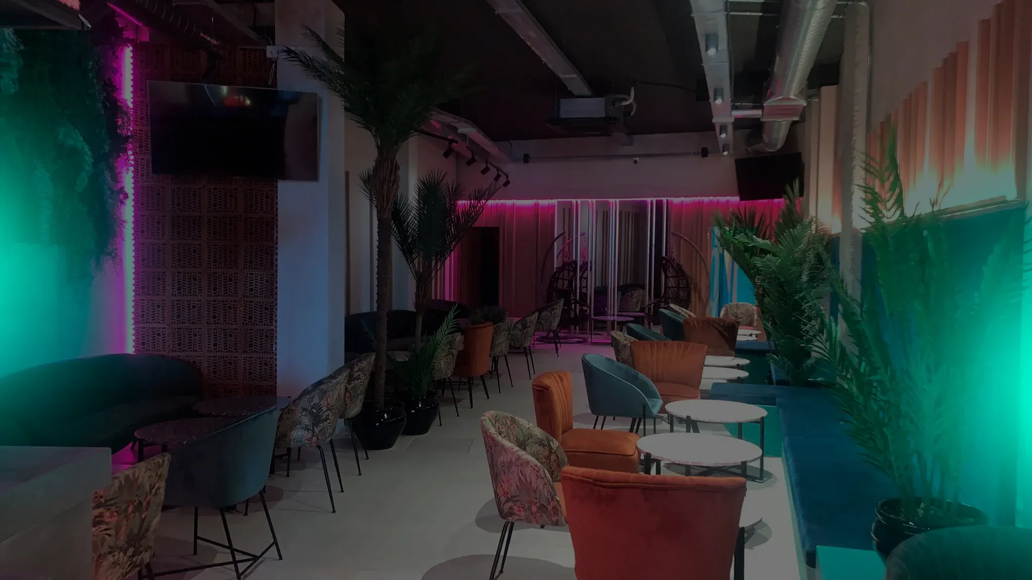 Habibi Shisha Lounge combina un ambiente moderno con iluminación vibrante y áreas cómodas, perfecto para relajarse y disfrutar con amigos.