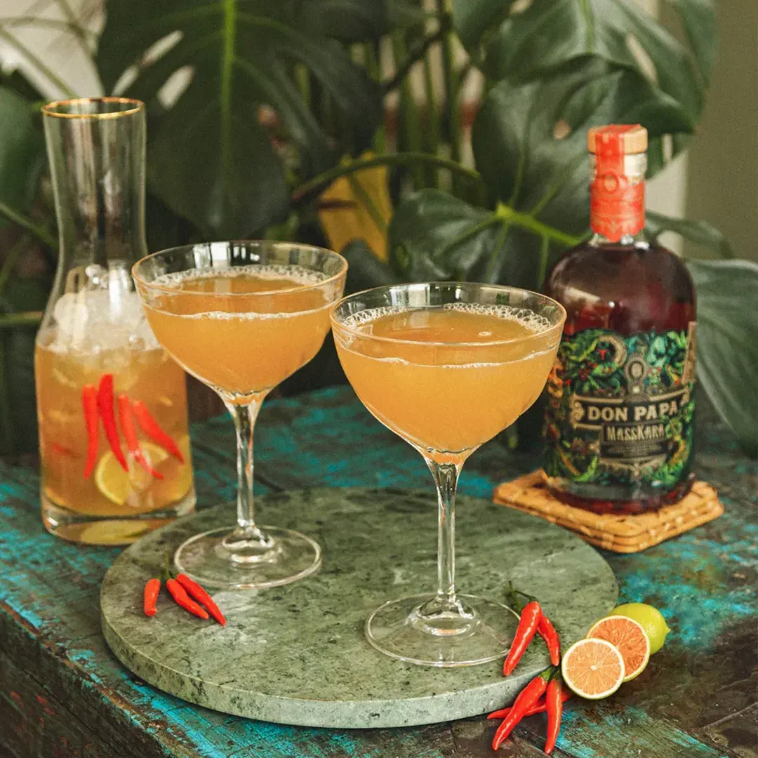 Acompáñalo de un triple sec, zumo de limón y un toque de azúcar para crear la “Maskarita”. Disfruta su contrapunto entre dulzura y picor con hielo y un adorno de lima.